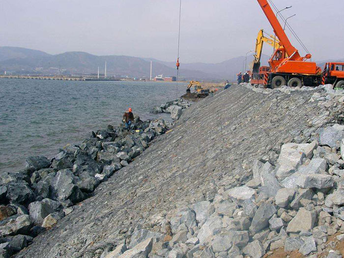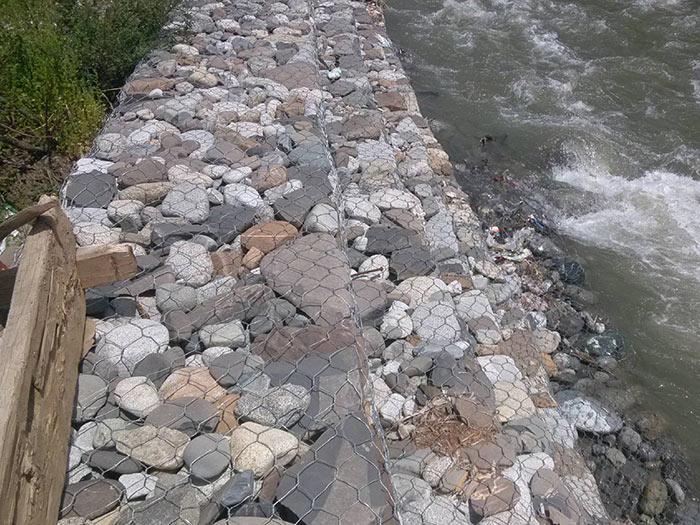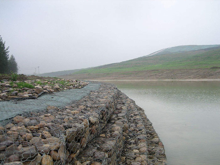 鋅鋁合金石籠網是一種生態格網結構。石籠網由高抗腐蝕、高強度、具有延展性的低碳鋼絲或者包覆PVC的以上鋼絲使用機械編織而成,使用該網制作而成的箱型結構就是石籠。根據ASTM和EN標準,所使用的低碳鋼絲直徑根據工程設計要求而不同。一般介于2.0-4.0mm之間,鋼絲的抗拉強度不少于38kg/m2,金屬鍍層重量一般高于245g/m2石籠網片的邊緣線直徑一般要大于網線直徑。其雙線絞合部分的長度不得小于50mm。以保證絞合部分鋼絲的金屬鍍層和PVC鍍層不受破壞。